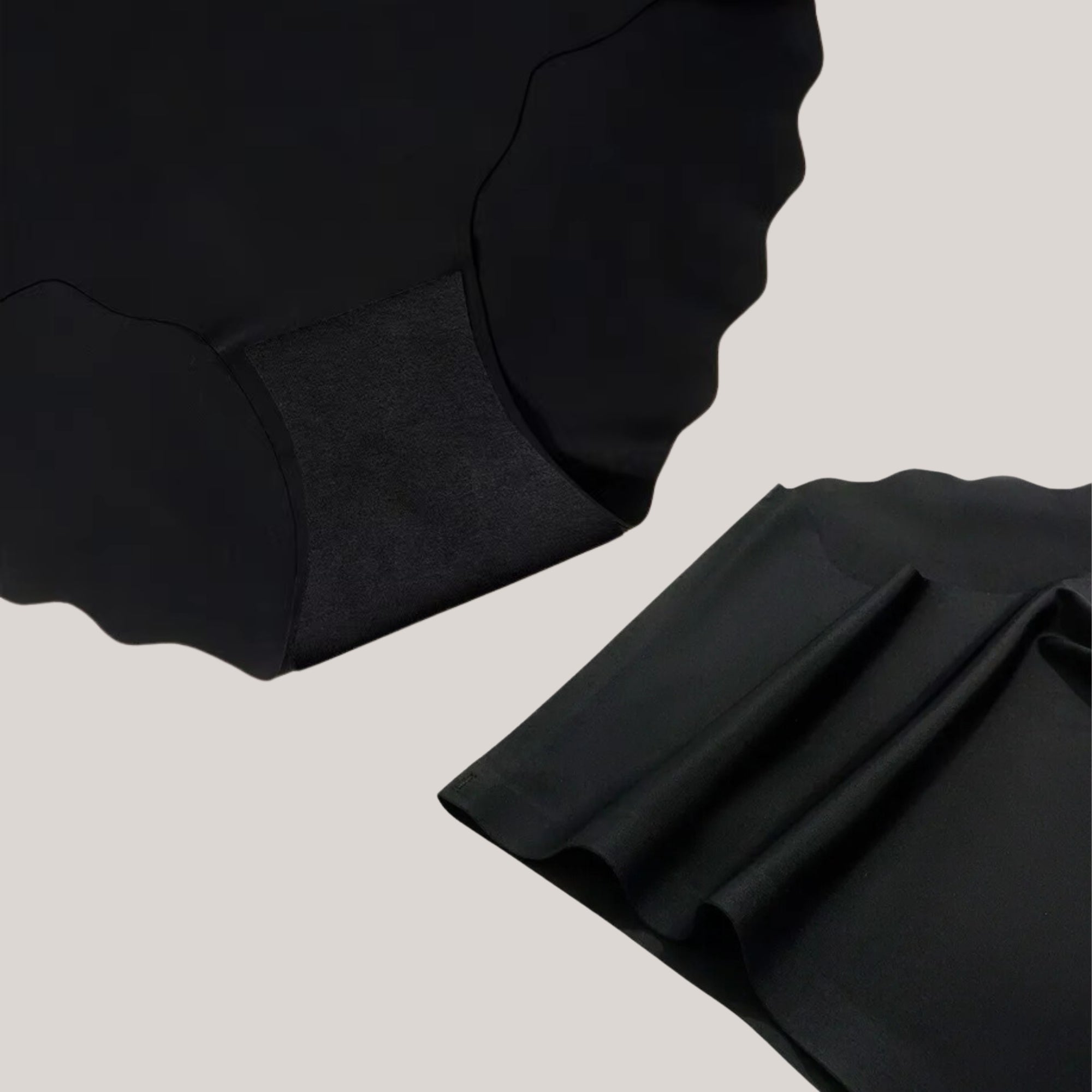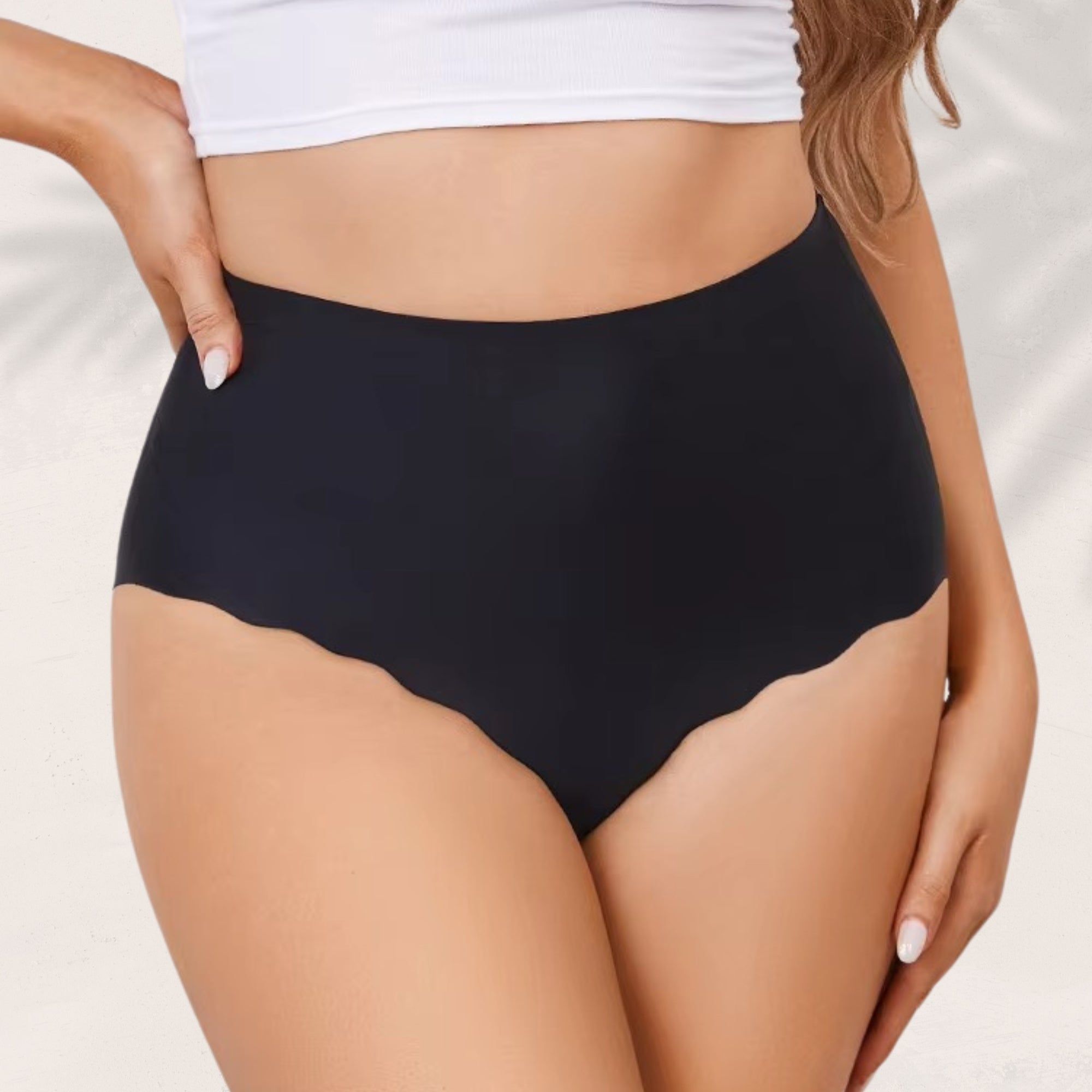 Zijdezachte naadloze slips die super gezellig en schattig zijn. Ze zijn vrijwel onzichtbaar, met slechts twee kleine naden aan de voorkant die niet opvallen. De hoge taille geeft ondersteuning en de golvende randen zijn schattig. Ze passen perfect onder jurken. Geweldige aankoop!